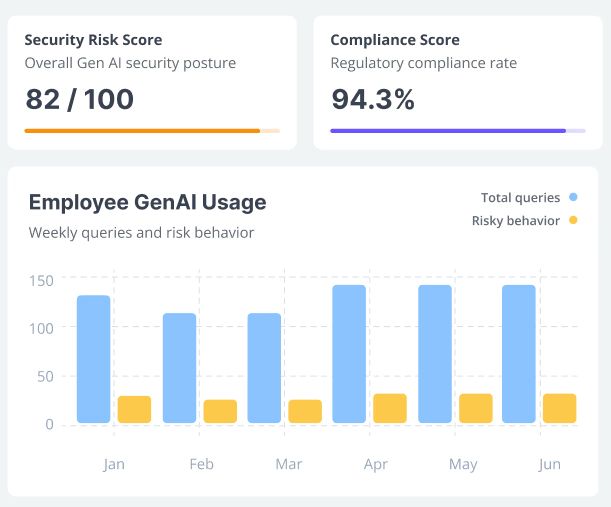 Unsere Software dokumentiert für Sie, wer KI wofür einsetzt, welche Risiken erkannt wurden und welche Schutzmechanismen gegriffen haben. Diese Informationen werden in einem klaren Dashboard bereitgestellt.